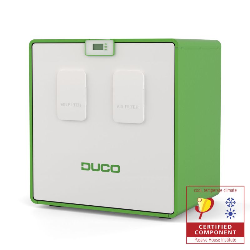 DUCO offers a range of products specifically designed to meet the requirements of passive house construction. These solutions are independently tested and certified by the Passive House Institute, confirming their suitability for high-performance, low-energy buildings.The DucoBox Energy Comfort Plus has received official certification for its exceptional heat recovery efficiency, applicable to both the D350 and D450 models, making it a reliable choice for energy-conscious residential projects.
